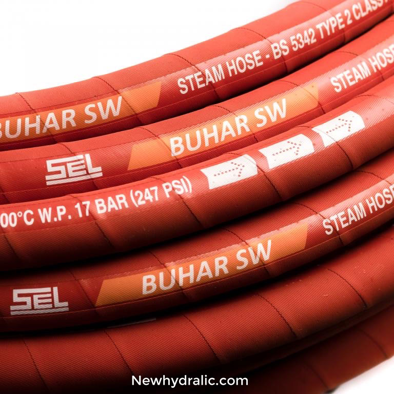 با توجه به قطر داخلی نسبتاً زیاد، این شیلنگ توانایی انتقال حجم زیادی از بخار را در زمان کوتاه دارد و در فرآیندهایی که سرعت بخار، استریلیزاسیون، گرمایش موضعی و تمیزکاری صنعتی مد نظر است، عملکرد بهینهای از خود نشان میدهد. ساختار این شیلنگ معمولاً از سه لایه اصلی تشکیل شده است: لایه داخلی مقاوم در برابر بخار (از جنس EPDM یا تفلون)، لایه تقویتی از نخ صنعتی یا سیم فولادی برای تحمل فشار بالا، و روکش خارجی مقاوم در برابر عوامل محیطی مانند حرارت، روغن، UV، مواد شیمیایی و سایش.